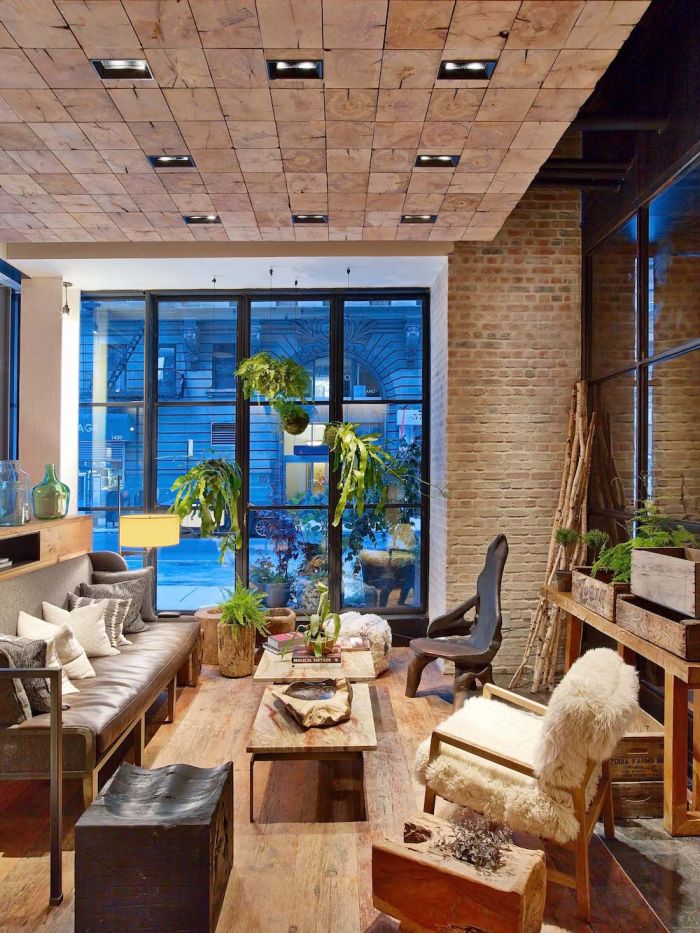 On each of the 18 floors, unique artistic renditions of the floor numbers are represented in a different design, such as penny nails. Living moss and plants grow in hallway niches and alongside each guestroom door. Of its 229 guest rooms (including 23 suites), most feature reclaimed wooden timbers and cozy, pillow-laden window nooks perched above Manhattan streets – the perfect spot in which to enjoy morning coffee or an afternoon nap. For those desiring a bit more space, the hotel’s 17 Alcove Suites – almost twice the size of the hotel’s standard rooms – feature separate living rooms. Two City Suites feature views of Manhattan’s streets, and two Park Suites feature views of Central Park. For the ultimate in space, the Greenhouse Suite, with unparalleled views of the city, offers 1,200 square feet within its five rooms.