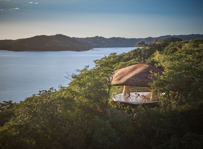 Four Seasons Resort Peninsula Papagayo, Costa Rica: The Wellness Shala is a serene sanctuary on property designed to provide guests with an opportunity to unlock inner harmony, align with nature, and reconnect with themselves. Guided by the principles of bio-architecture and sustainability, this structure seamlessly integrates with its surrounding environment and is where guests can practice yoga and meditation along with immersive cultural experiences including Rooted Hatha, a grounding practice to align with nature, Sounds Healing, and Yoga Nidra.