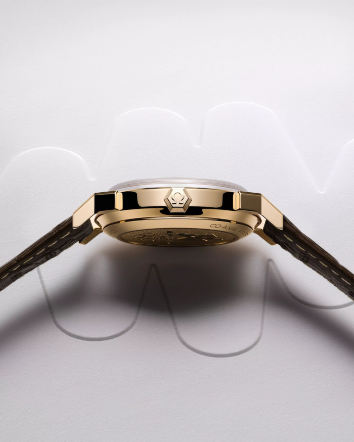 The Seamaster 37 mm Milano Cortina 2026 draws inspiration from the timeless design elements of the Seamaster collection. Crafted from 18K Moonshine™ Gold, a distinctive metal exclusive to OMEGA, the 37 mm symmetrical case boasts sleek, refined proportions, polished to a high shine for a radiant finish. The hexagonal crown is a monumental design element that recalls the original Seamaster Olympic timepieces.