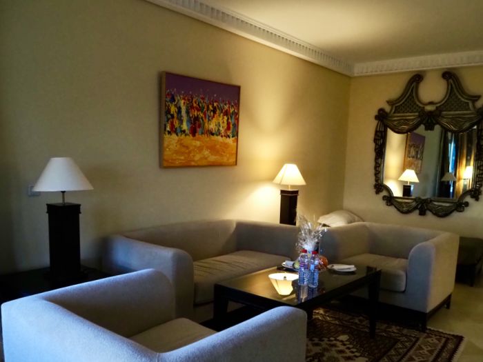 Our room, 3007, the Philippe Gonzales Suite, named after a noted sociologist, comprised three rooms and a covered balcony adjacent to the bedroom. The living-room featured a mashrabiya, an intimate alcove facing the main road, with an oriel window and a sofa. Mashrabiyas are traditionally used as a discreet niche for Muslim women to see what was going on outside but not be seen. It has lattice windows with a floor-to-ceiling curtain for even greater privacy.