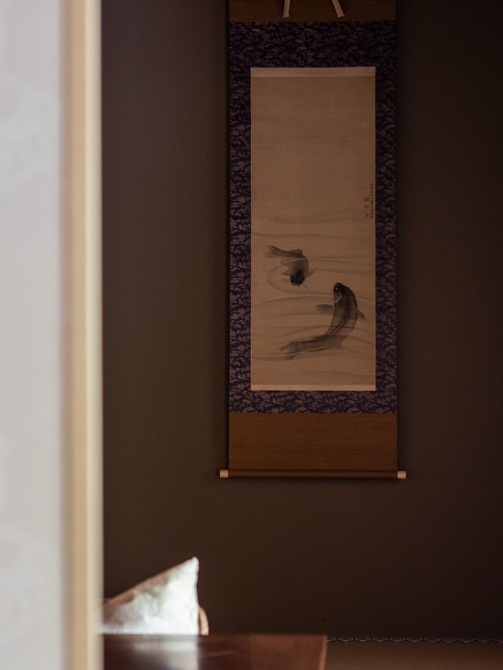 A hanging scroll of a carp by Edo-period artist Ganku in the SHIKI-NO-MA room