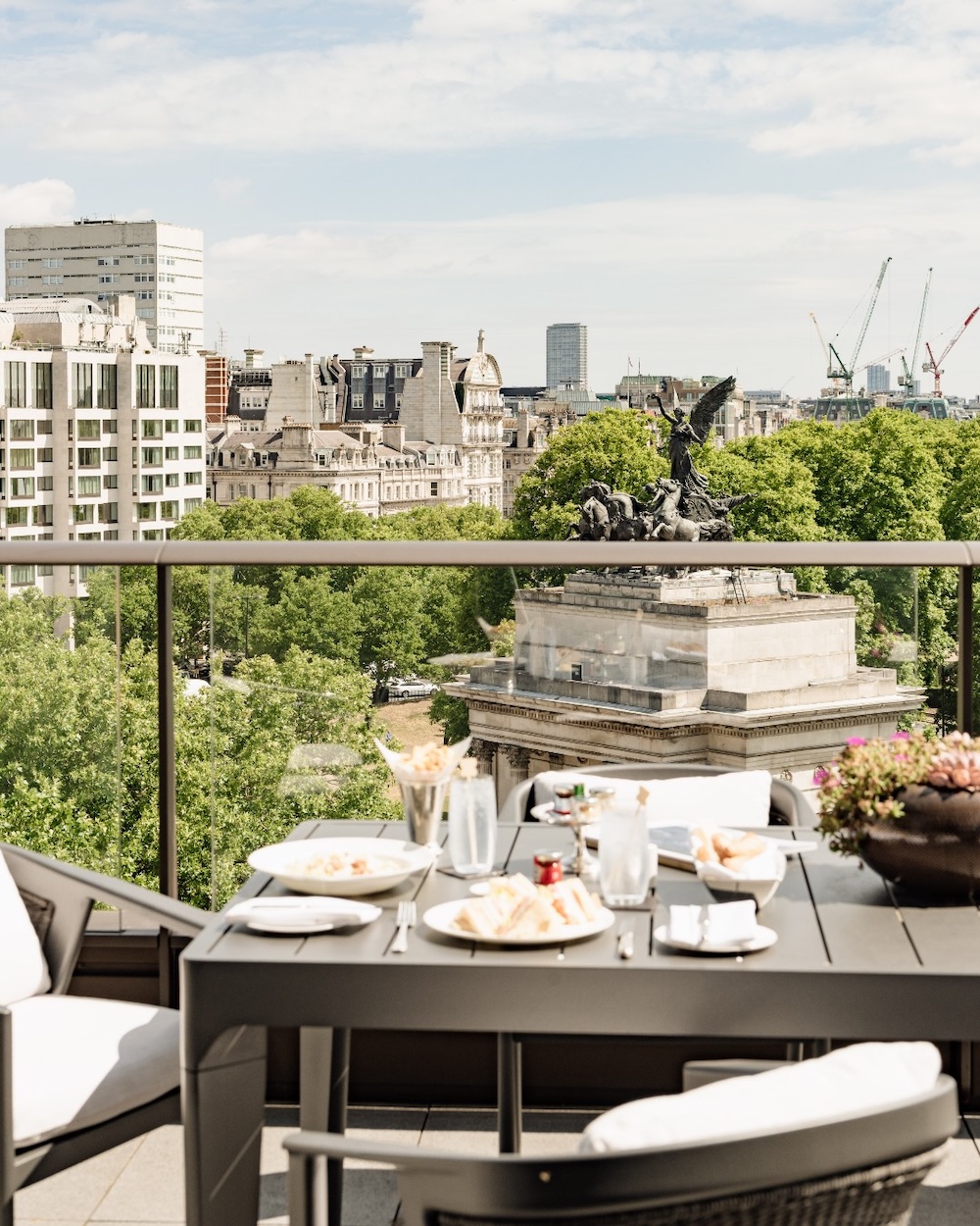 At The Peninsula London, automotive inspiration isn’t just a theme, it’s part of the hotel’s DNA. Beyond seasonal highlights, guests arrive in the hotel’s bespoke fleet of Brewster Green Rolls-Royces and Bentleys, enjoy secure parking and detailing through Topaz Detailing, and can admire a rotating display of classic cars from Brooklands Museum, the birthplace of British motorsport. Even the journey through the property feels steeped in heritage. Inspired by vintage hot-air balloon baskets, a wicker-lined lift leads to rooftop restaurant and bar Brooklands by Claude Bosi, where motorsport and aviation heritage influence every aspect of the design and cuisine.