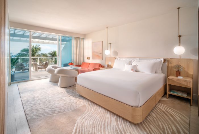 Located on a half mile stretch of private golden beach, the resort brings the essence of its seaside locale into every moment of the day and night. Curated programming invites guests to sink their toes in the sand and lounge the day away, partake in water adventures, or discover moments of rejuvenation. Beach wellness sessions include Sunset Yoga and a monthly Full Moon Yoga class. A Ritual Series includes First Light oceanside wellness classes guided by expert instructors, and a Light the Night sunset fire ritual. At Living Room, the resort’s urbane, lobby located gathering spot, guests can kick-off the evening with a special energizing cocktail, or wind down the day with a Night’s End ritual that matches a mellow mood. When not relaxing on the beach or enjoying ocean adventures such as surfing and pedal kayaking, guests can take a dip in three pools. Or they can opt for a day at the Cabana Club by Vilebrequin, a collection of vibrant pool cabanas designed in partnership with St. Tropez swimwear brand Vilebrequin.