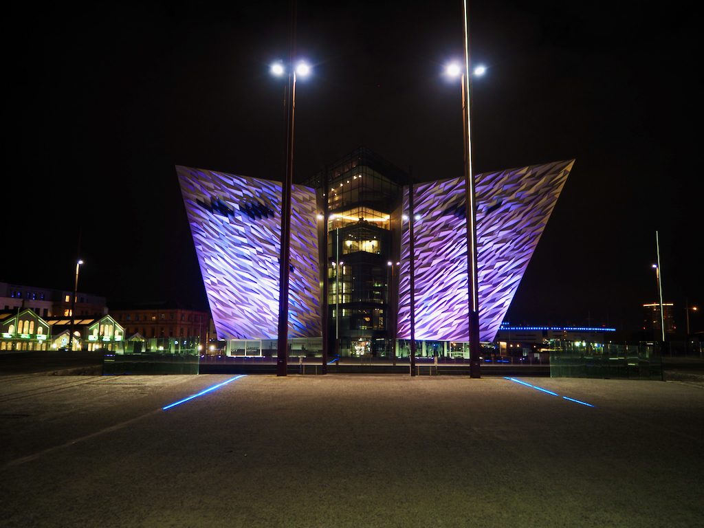 It also stands beside the landmark building housing the massive Titanic Belfast museum, shaped to resemble four ships’ bows and covered by thousands of silver aluminum tiles, giving it the local nickname: the Iceberg.