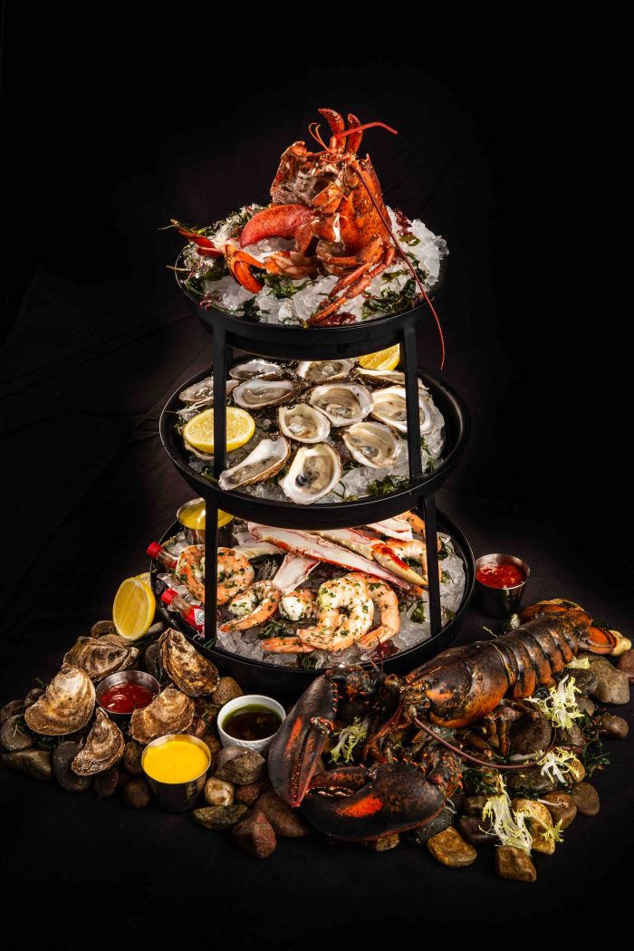 If you want to go upscale, you can head to Scotch 80 Prime, the Palm’s signature steakhouse. This elegant space is huge with a few separate dining rooms, long bar and an impressive menu and wine selection. We enjoyed a beginning lovely warm bread service and started off with the char-broiled seafood platter with oysters, scallops, mussels and crabs which was flambéed tableside with cognac. Next came the A5 Wagyu empanadas with ground Wagyu, tomato, carrots and peas in puff pastry. Shrimp toast also arrived before our perfectly cooked rib-eye. Diners can choose from a huge variety of cuts including filets, rib-eyes, New York as well as an extensive Wagyu collection of beef. Accompaniments include garlic prawns, foie gras, lobster or crab as well as a variety of steak sauces. Main courses also include Maine lobster, New Zealand king salmon, bluefin tuna, Nigerian prawns, Wagyu beef cheek and lamb. Side courses include a delicious lobster fried rice; Millionaire’s Maccheroni with truffle cream, prosciutto and a fried egg; creamed corn with bacon; truffle duck fat fries; garlic potatoes; hash browns and creamed spinach. Dessert included a butter cake with fresh fruit and a trifecta of chocolate treats.
