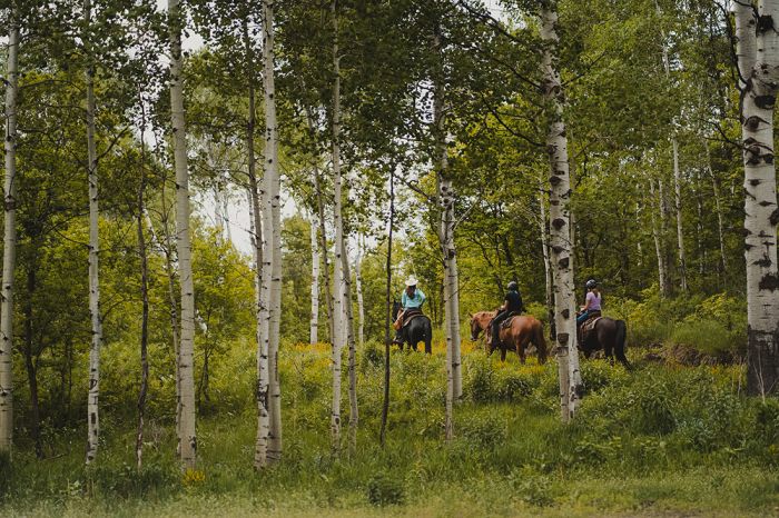 Enjoying horseback riding in the summer with outstanding views through the Aspens.