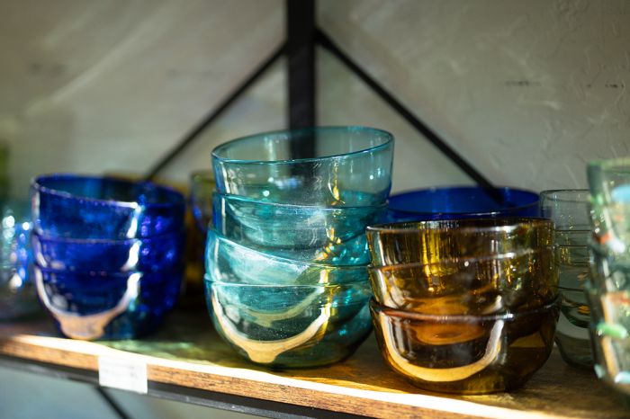 Next to the arts annex: a hot shop with glass artisans creating stunning glassware from recycled glass. Found throughout the property as drinking glasses, candleholders, charger plates and more, the pieces exemplify the focus on sustainability, craftsmanship and community. With demonstrations October through March, the glassblowing studio is not to be missed while on property.
