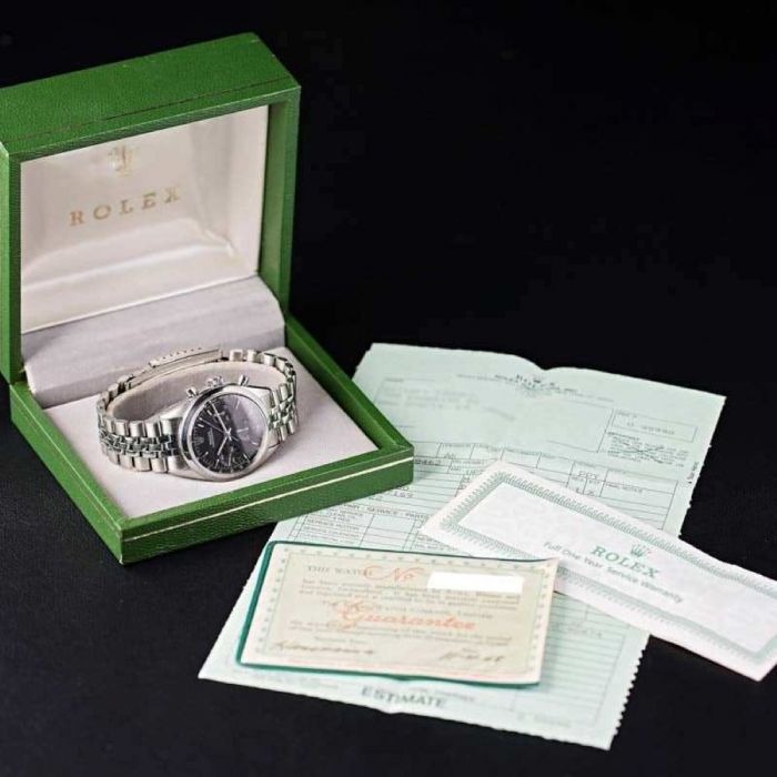 Originally purchased in 1968, the watch has remained in the same family for over half a century. A father bought two 6238s that year — a silver-dial version for himself and this black-dial masterpiece for his own father. Both were cherished heirlooms, carefully preserved with their documentation intact, surviving the decades as symbols of family legacy and horological heritage. Now, for the very first time, the black-dial Pre-Daytona — one of the rarest variations ever produced — has surfaced for collectors and design enthusiasts alike.