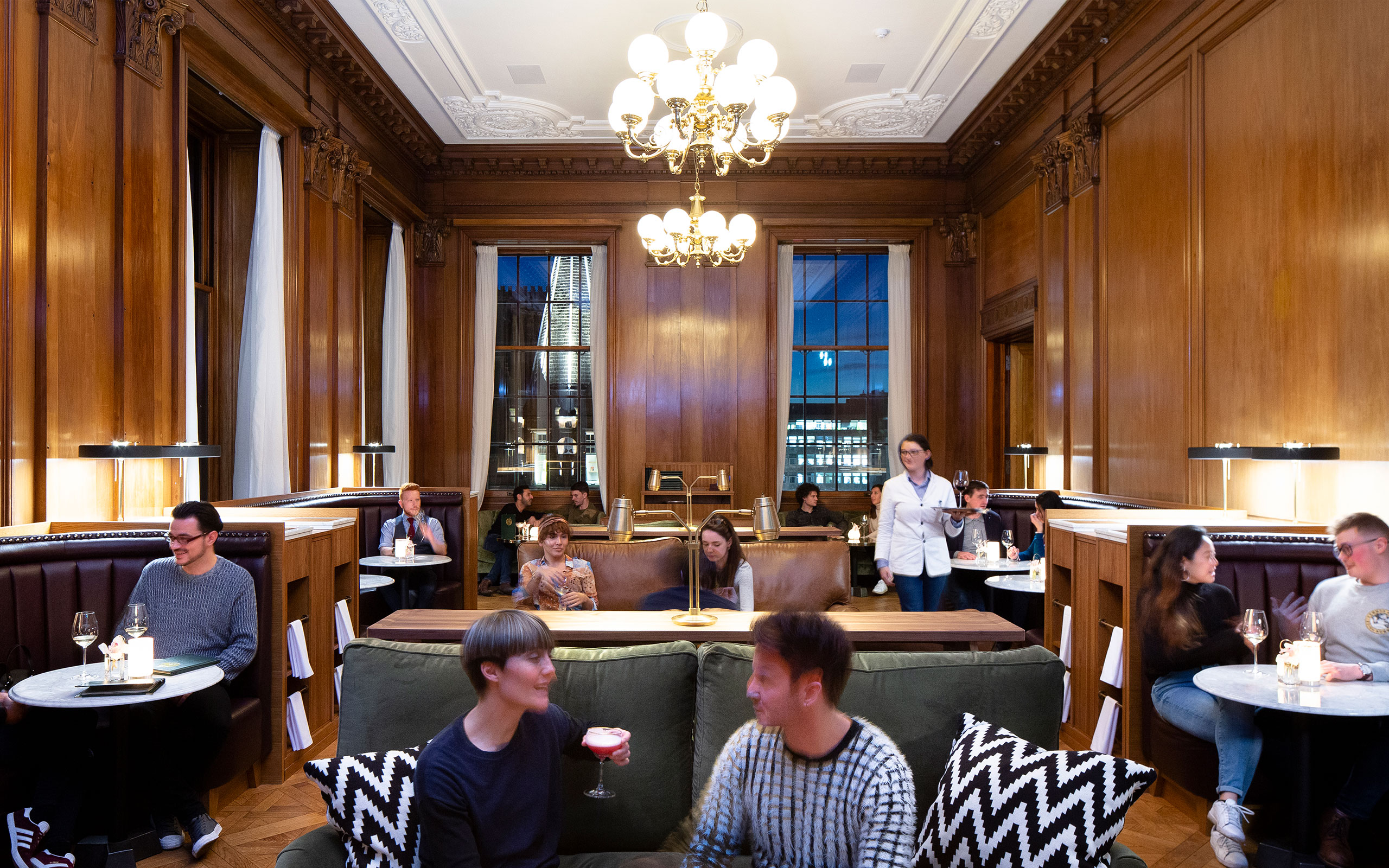 After nearly two centuries as a bank, it re-opened as a hotel in 2018, and in 2020 it became part of the Cheval Collection of luxury apartments in London and Edinburgh. All the architectural charm of The Royal Bank of Scotland was retained and then embellished further: the wood paneling throughout the hotel is stunning, and the central hall open from top floor to bottom is like something out of an M.C. Escher illustration.