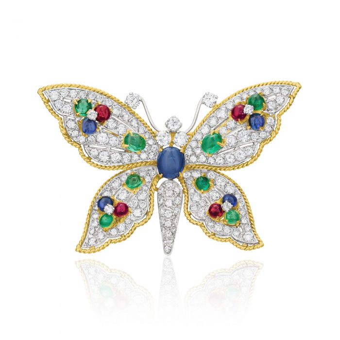 BULGARI MULTI-GEM AND DIAMOND BUTTERFLY BROOCH