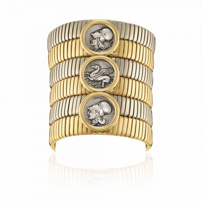 BULGARI COIN AND BI-COLORED GOLD TUBOGAS BANGLE BRACELET