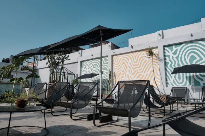 The boutique hotel offers a popular café as well as a gallery and event space. On the second floor are the accommodations while the third floor offers an expansive terrace, ideal for sunbathing or sunset cocktails while overlooking the city.