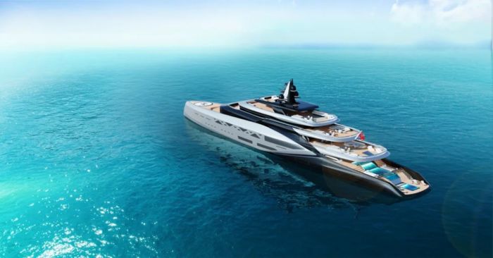 This magnificent modern hull is a concept by Design Storz, measuring 358 feet in overall length. We learned that the man behind the studio — Achim Storz — boasts a remarkable career in the motorsport scene. He was previously connected with McLaren and Lotus for their campaigns in Formula 1.