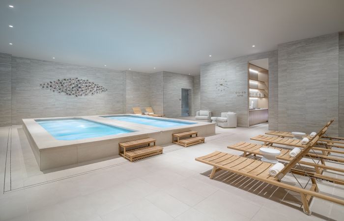 Lapis Spa and Wellness is a tranquil retreat within the resort, focusing on the energy of water and healing powers of enjoying a soothing day at the spa. Impressive facilities accompany the locker rooms with large soaking tubs in both hot and warm, steam showers, and infrared saunas. Or count the constellations in a starlit relaxation lounge and quiet area before your treatment. The real magic though: the communal area. Soaring ceilings with color changing panels bathe the specialty soaking areas, while guests enjoy the latest cutting-edge technology in an Aufguss Sauna (a large communal sauna with a screen depicting various landscapes. Inspired by Nordic spas, the Aufguss Sauna has daily “shows” that incorporate aromatherapy, towel choreography, and digital imagery for an unforgettable and unique experience. Outside the immersive sauna, to cool off head to the indoor snow shower. More novelty than therapeutic, I did enjoy the cooling sensation as snow/ice drifted down from the ceiling in the room. A full-service fitness facility is also available on property.