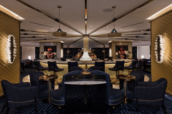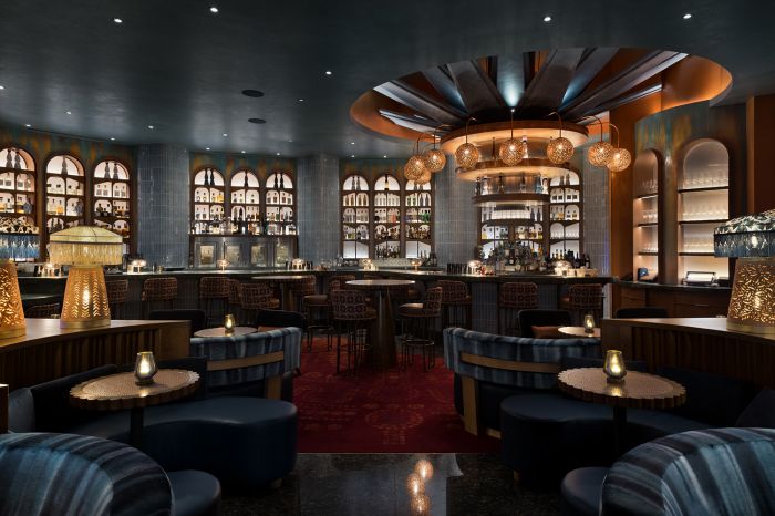 Bleau Bar is at the heart of the casino floor, not to be missed with a dazzling chandelier overhead. Look up to see the delicate golden bowties included in the design while taking in the hustle and bustle of the casino. Various cocktail bars and lounges all have unique offerings, including specialty tequila and mezcal at Azul Tequila & Mezcal Lounge, top-shelf mixology at Solo Club, the serenity of Collins, and your favorite cocktail served up at Après in Promenade. Poodle Room is an exclusive members only social club, where floor to ceiling windows offer commanding views from the top floor.