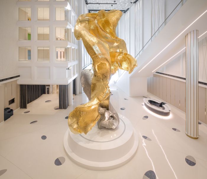 The art collection at Fontainebleau is staggering and worth experiencing in and of itself. My favorite piece, Oceans by artist BREAKFAST, is a kinetic marble and stainless-steel sculpture which emulates the dynamism of the world’s oceans. Informed by real-time oceanographic data from over a hundred coastal cities globally, this impactful piece will have you mesmerized as the gold and white “brixels” surge, pirouette and flow blurring the lines of technology, art and the environment. Another show-stopping piece is Urs Fisher’s Lover #3, a cast aluminum, stainless-steel and gold leaf sculpture that towers over visitors in a swirling metallic dance of its own.