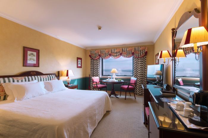 As for my stay at Dom Pedro Lisbon, during the international Web Summit, my room was a spacious one in the ‘Tower’ category, which in addition to fine views over the city also granted me access to the VIP Lounge and the spa. Furnishings included a round table with armchairs, a suitable workspace, mini-bar, tea and coffee facilities, king size bed and large wall TV.