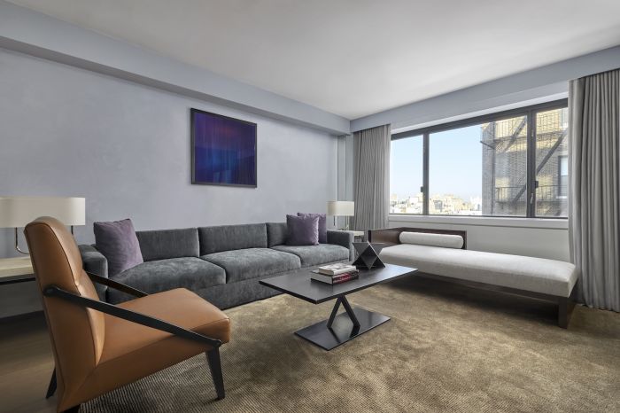 The Uptown Bohemian Suite, designed by Meyer Davis Studio Inc, is inspired by the eclectic aesthetic of SoHo and the clean lines of Chelsea. The Bespoke Suite draws its inspiration from New York City’s vibrant fashion industry. The Glamour Suite is an interpretation of what might have been Marilyn Monroe’s Park Avenue pied-a-terre, while the Pop Art Suite features bright colors and bold designs. Haynes-Roberts, Inc. designed the Classic 1970s Apartment with a sophisticated aesthetic inspired by the glamorous apartments of Milan from the 1970s. These Signature Suites are anchored by the Nate Berkus Apartment on the 21st floor, a 1,000 square foot oasis of jewel-toned style and comfort with a formal living room, dining room, kitchen, bedroom, and balcony with views of Park Avenue.