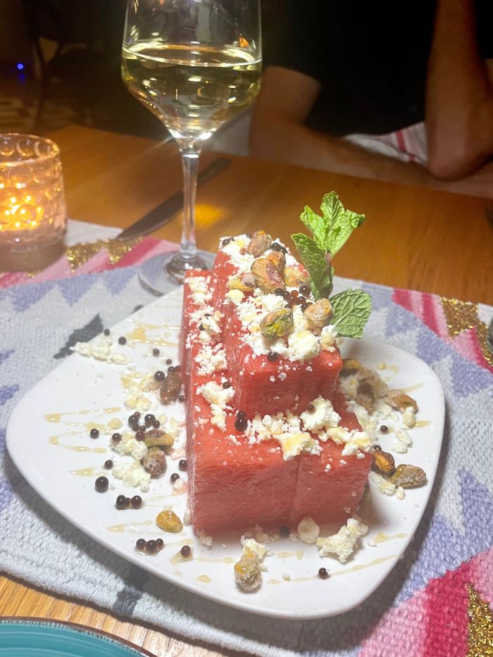 Azúcar is a poolside restaurant providing a chef-curated modern contemporary menu featuring cuisine with an emphasis and focus on fresh flavors. Utilizing high-quality and local ingredients, the watermelon, feta cheese and pistachio salad is a seasonal must to try. So are the locally grown dates stuffed with Marcona almonds and wrapped in prosciutto. It’s served with a blue cheese fondue and pairs nicely with a spicy melon margarita.