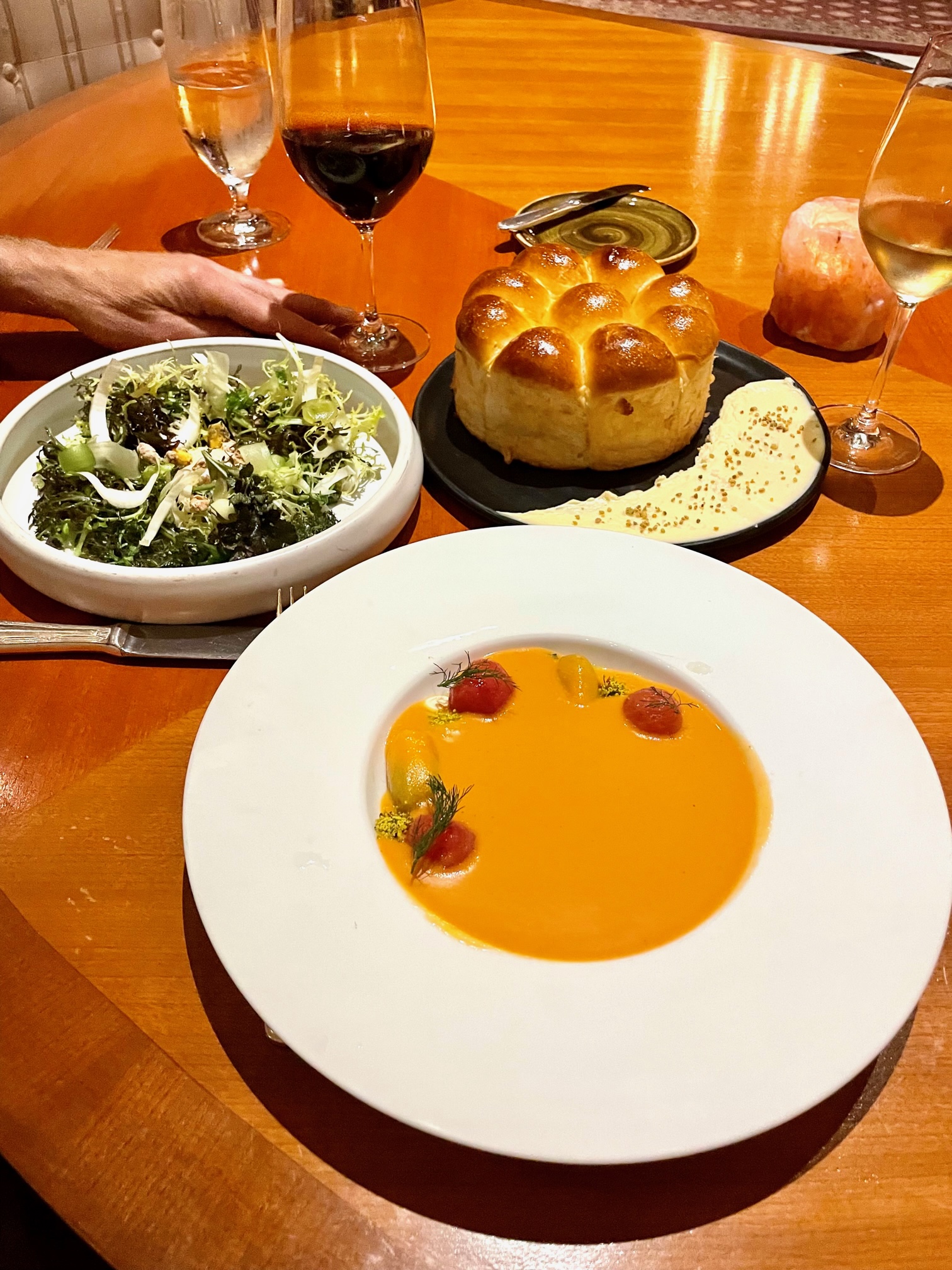 There are other dining venues at Fairmont Grand Del Mar. Starting with Addison, the only Southern California three-Michelin star restaurant with Chef William Bradley at the helm in the kitchen. Each menu item is a celebration of the regional ingredients prepared in a thoughtful and artistic presentation. The arched windows of the opulent dining room with soaring ceilings provide picturesque views. Guests splurge enjoying Bradley’s nine-course tasting menu with wine pairings from the wine cellar in the center of the restaurant. Sip rare Champagnes and discover wines from around the world.