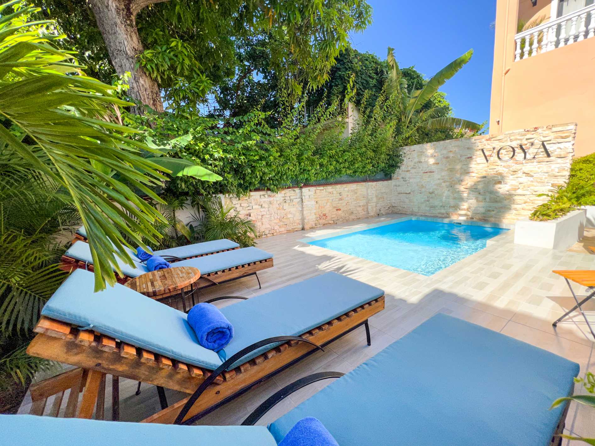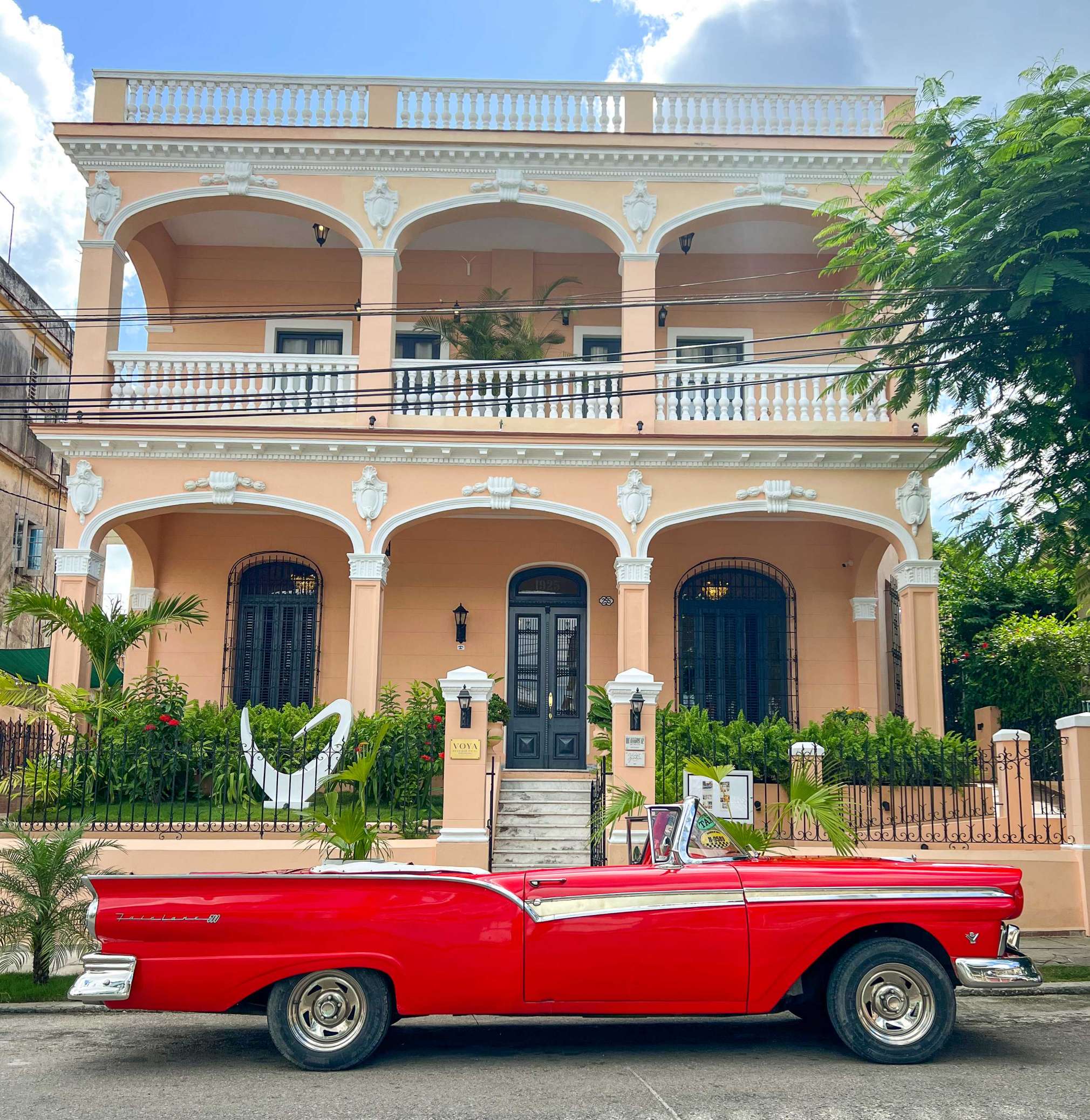 It’s down an ordinary street in a typical Cuban neighborhood. There you’ll see mainly homes, a shell of their former glory from the 1950s, most of which, like the roads, are in a state of disrepair. Passing through the area, you’ll also see cars from that same period, patched up with bondo and billowing out black exhaust fumes as they putter along. There amongst this backdrop, you’ll find a salmon-colored building in sparkling new condition. It is a  throwback to another time of elegance and sophistication. This exclusive abode has quickly attained a well-earned reputation for providing the creature comforts required by today’s well-to-do travelers.  Here is where you’ll find the recently opened Voya Boutique Hotel.