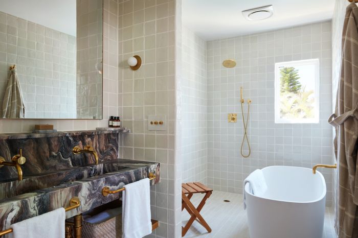 Each room is designed with one-of-a-kind vintage pieces, bespoke furniture, and curated artwork that is set amidst neutral and soothing tones in natural materials. Quiet luxury is the theme, with plush, king-size beds, vaulted ceilings, hand-painted tiles, imported marble vanities, and brass hardware. Many rooms have bathtubs, Juliette balconies with double French doors and offer ocean, garden or mountain views that beckon you outside.