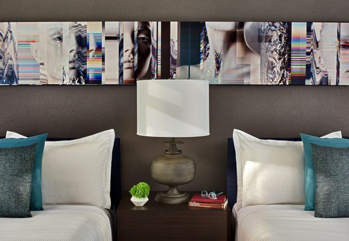 Last but not least is Hotel Zelos, located in the historic Pacific Building in the SoMa district. A bit sleeker and slightly more serious than its sister hotels, Hotel Zelos features crisp, chic, clean design within its 202 contemporary and spacious guestrooms and suites of varying size. Like Zeppelin and Zetta, Zelos too features provocative artworks and decor that reflect the city’s animated artistic scene. Yet, where the other two are a bit playful, Zelos is elegant, as illustrated by sleek room design in shades of gray with pops of color here and there.