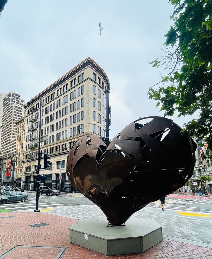 Also at Union Square Plaza, Monika Steiner’s ‘Gathering’ heart. This Bay Area based professional artist, originally from Switzerland, received her BFA degree from Sonoma State University. Her work has been shown nationally and internationally in galleries, museums, and public exhibitions. She is represented by galleries in San Francisco, Seattle, Santa Fe, New York, and Berlin.