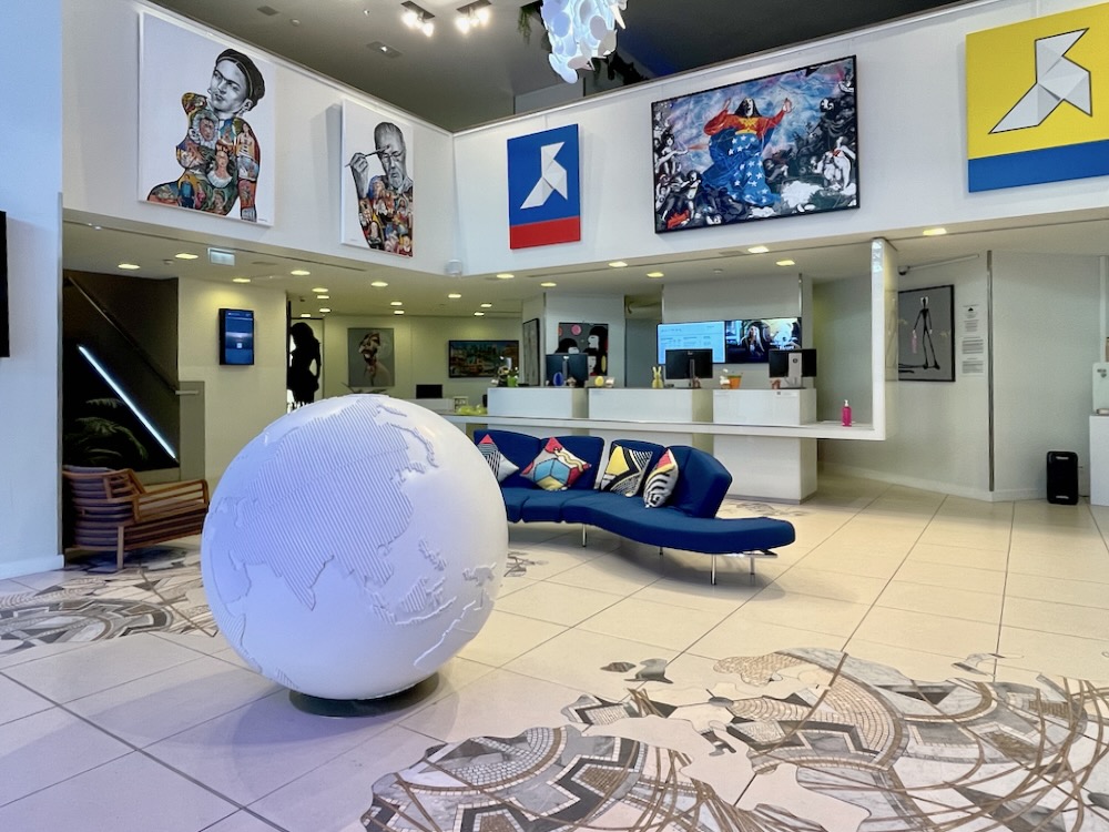 A chubby dog created from orange plastic, a giant white globe standing in the middle of the lobby and eclectic paintings hanging high above are among the first things to catch one’s eye upon entering the Pullman Toulouse Centre Ramblas.