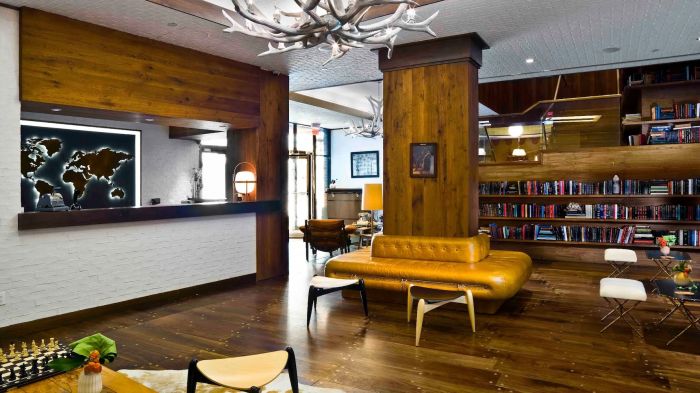 Often, it’s the seemingly minor aspects that raise a hotel’s stature. Gild Hall’s offering at check-in of a flute of prosecco, for instance, makes a welcoming impression to weary travelers. The lobby’s professional Vertuo Line Nespresso machine provides guests with delicious complimentary coffee every morning. Every room features a mini-bar with deluxe sized spirts and wines, as well as a variety of snacks, most of which are supplied by minority led brands. And well-stocked bookshelves and vintage board games in the library lounge encourage lingering.