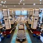 Often, it’s the seemingly minor aspects that raise a hotel’s stature. Gild Hall’s offering at check-in of a flute of prosecco, for instance, makes a welcoming impression to weary travelers. The lobby’s professional Vertuo Line Nespresso machine provides guests with delicious complimentary coffee every morning. Every room features a mini-bar with deluxe sized spirts and wines, as well as a variety of snacks, most of which are supplied by minority led brands. And well-stocked bookshelves and vintage board games in the library lounge encourage lingering.