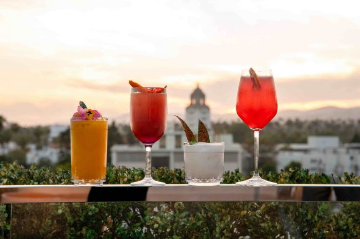 Signature drinks include a Burton Sunset Spritz with St. Germain, blood orange, raspberry boba; The 1975, a tropical homage to the hotel’s founding year and the Marilyn Spritz, a prosecco-based toast to Hollywood glamour.