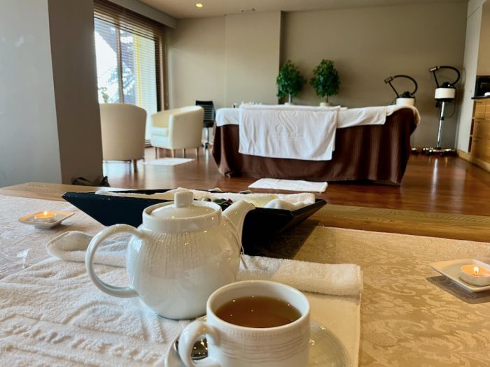 I and my companion chose a pampering package for couples entitled ‘Unwind Together’ that began with an aromatic bath during which we were served chilled champagne, followed by a full-body massage and ending with fresh fruits, herbal teas and stunning views over the cliffs and city.