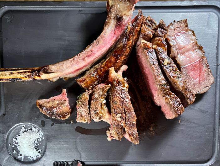 For mains we share a Tomahawk of matured veal with béarnaise sauce, mushrooms, grilled vegetables and the house bbq sauce. Moist and the right shade of pink, just the way we like it, the oyster mushrooms and caramelised pineapple enhance the umami taste. Madeira’s Ilha wine, from tinta negra grape, is the perfect accompaniment.