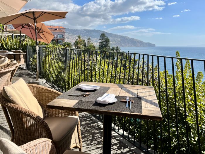We dined at Avista restaurant, one of several restaurants at The Cliff Bay, roughly translated as ‘The View’ due to the spectacular beauty of Funchal bay from the restaurant’s cliff-top vantage point. Sitting on the ground-floor terrace, the sparkling city lights resemble the bubbles in my glass as I enjoy an Ocean Mist, a blend of tequila, agave, coconut water and fleur de sel, one of thirteen cocktails on the drinks list.