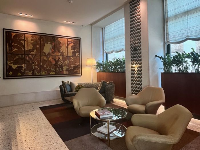 Though refurbished at a cost of over 32 million euro with all the mod-cons and reopened five years ago, the hotel still breathes an air of art deco elegance, from the metallic pattern in the elevators to discreet frescoes on some of the lobby walls.