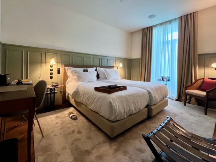 Opening our balcony doors at Lisbon’s Bairro Alto Hotel during the day, my companion and I enjoyed the excited hustle and bustle below on the iconic, tree-lined Praça de Camões square.