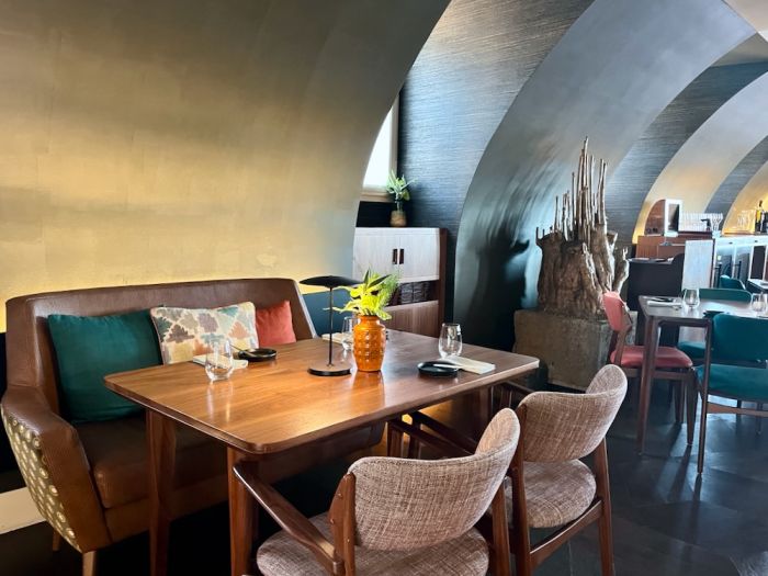 Artefacts near the entrance, including a traditional comb, knife, demijohn of red wine and a shoeshine bench, harken back to early bohemian life in the district. At the far end is is a spacious open kitchen with a surround of ‘Jupiter’ high stools, where I counted seven chefs working on a busy Saturday evening.