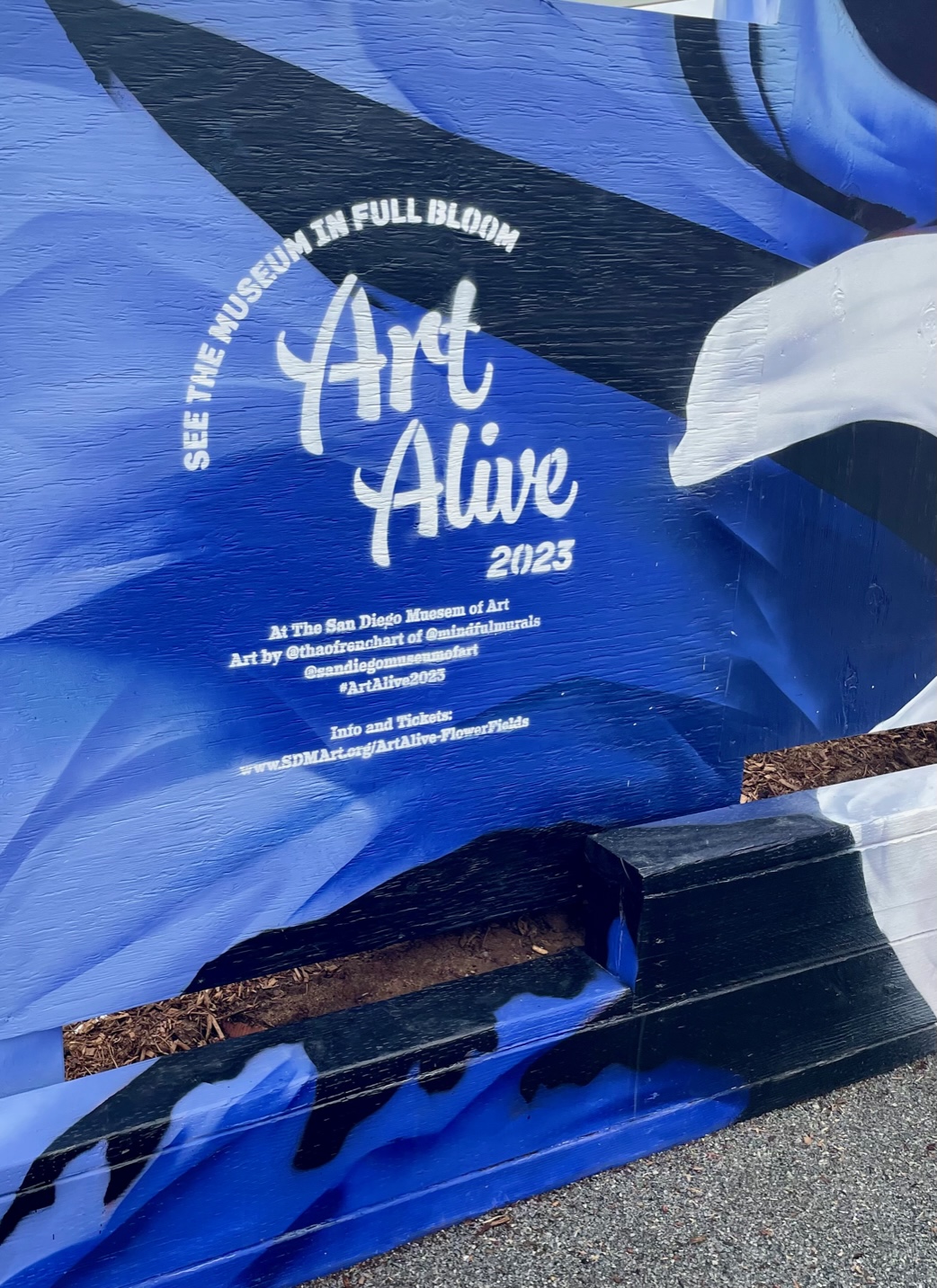 Celebrating the return of Art Alive, The San Diego Museum of Art chose San Diego artist, muralist and photographer, Thao Huynh French to paint a mural at The Flower Fields. Using bold colors, her mural inspires visitors to learn about the museum’s upcoming signature fundraiser on March 30 through April 2.