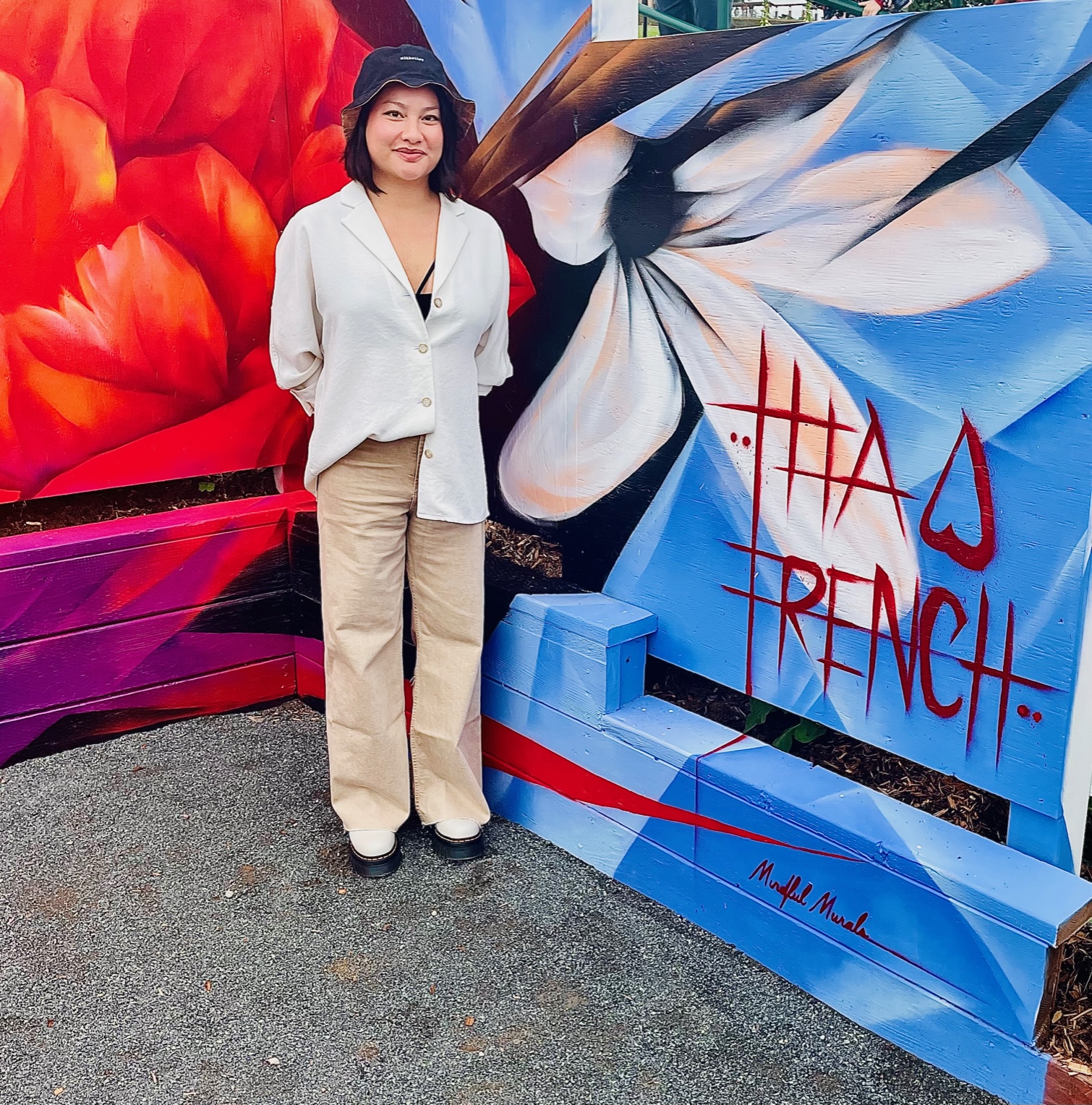 Known as a co-founder of Mindful Murals, a creative social enterprise with the mission of bringing communities together through the power of Art, French and her husband and business partner have painted over 400 interactive murals for schools and public spaces in Southern California to Mexico City. French’s personal artwork explores different varieties of flowers and her Asian American heritage. She uses acrylic and spray paint as primary mediums with no limit to use of color.