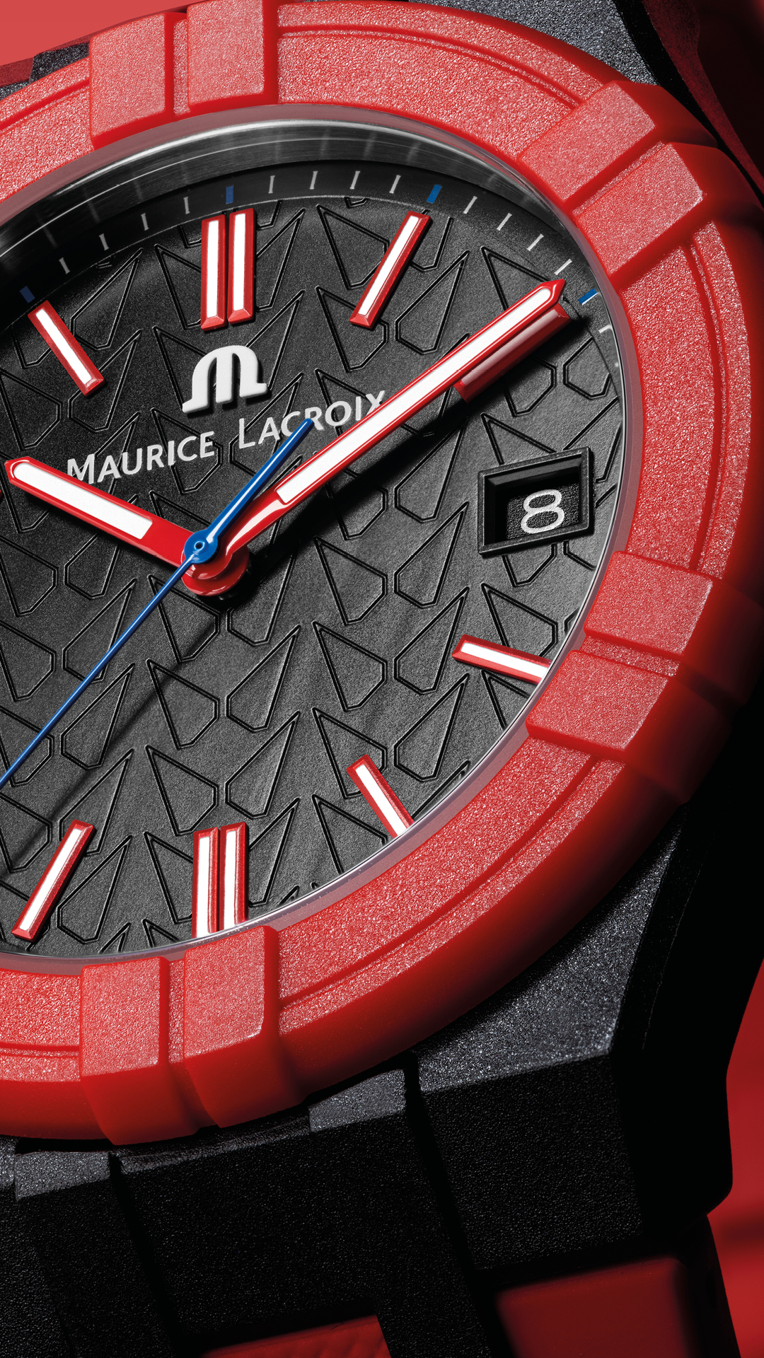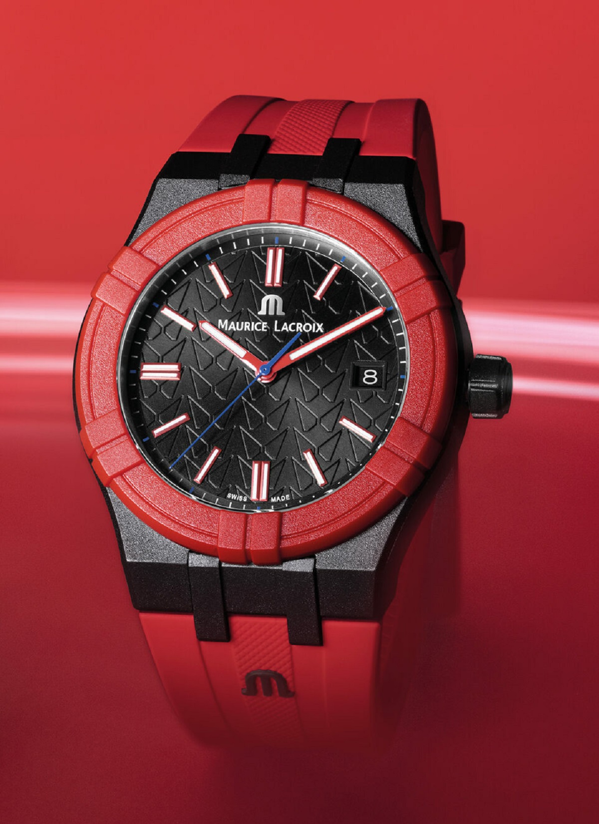 The watchmaker supplies a second strap in red rubber with black accents. And as always for this brand, wearers can quickly change straps using Maurice Lacroix’s Easy Strap Exchange system, which requires no tools.