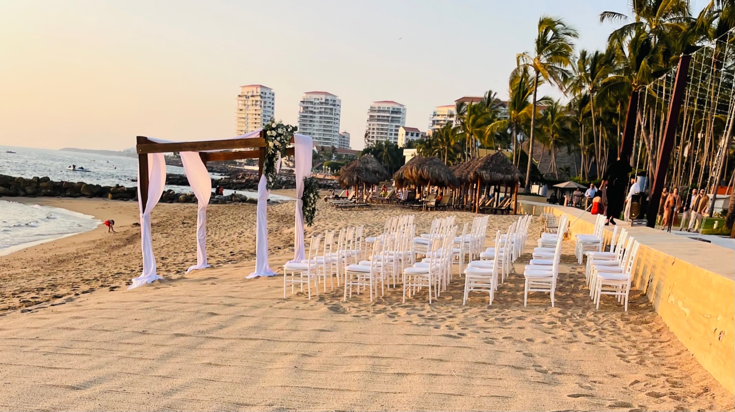 Since The Westin Resort & Spa, Puerto Vallarta is located where the mountains meet the beach, the modern 14-story hacienda architectural design is set among a lush tropical garden leading out to a private beach cove overlooking the Pacific Ocean. Wedding ceremonies can be set up on a grassy knoll or right on the sand with a canopy for shade and comfort.