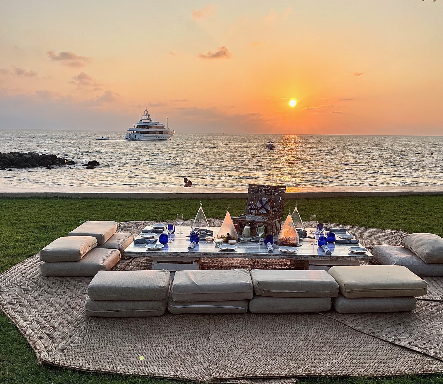 The Westin Resort & Spa, Puerto Vallarta offers custom catering options in a variety of locations. A popular dining option is a Sunset Picnic overlooking Bandera Bay. The staff set up tables and cushions for guests to enjoy beer, wine and margaritas with a menu of picnic fare. Trays of vegetables with dips, fresh fruit, meats and cheese, plus wrapped sandwiches are popular.