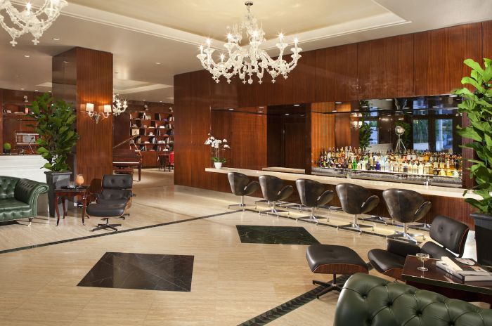 With its dark polished wood interior and starched white tablecloths, stepping inside the hotel’s dedicated signature eatery is like being whisked back to a bygone era, in part due to the dining room being a close replica of the original 1930s-era Harry’s Bar in Venice. Today, Executive Chef Max Farina presides over the menu, which spans Italian-American favorites, classic Venetian dishes, plus seasonal specials, including to-die-for tortellini with braised sage and a grilled swordfish with chimichurri sauce. Clad in white jackets and black bow ties, servers are attentive with impeccable timing.