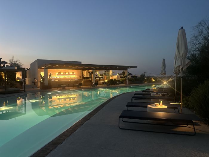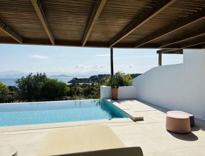 The hotel’s whitewashed buildings, with their smooth curves and minimalist lines, are a nod to the island’s architectural heritage. Inside, the design is clean and modern, with a focus on natural materials and earthy tones that reflect the beauty of the surrounding landscape. The accommodations at Parocks Hotel are designed with comfort and elegance in mind. The hotel offers a wide range of rooms and suites, each thoughtfully decorated to create a calming, luxurious environment. The interiors feature a palette of soft neutrals and cool blues, with plush bedding, high-end finishes, and bespoke furnishings that add a touch of sophistication. Each room comes with a private balcony or expansive terrace, perfect for enjoying the spectacular sunsets that Paros is known for. For those seeking something extra special on the property, Parocks offers several suites with private plunge pools (Villa 101 was a standout!), where guests can unwind in complete privacy while taking in the panoramic sea views and other Greek islands in the distance. These units are ideal for couples on a romantic getaway or anyone looking for an extra touch of indulgence during their stay.