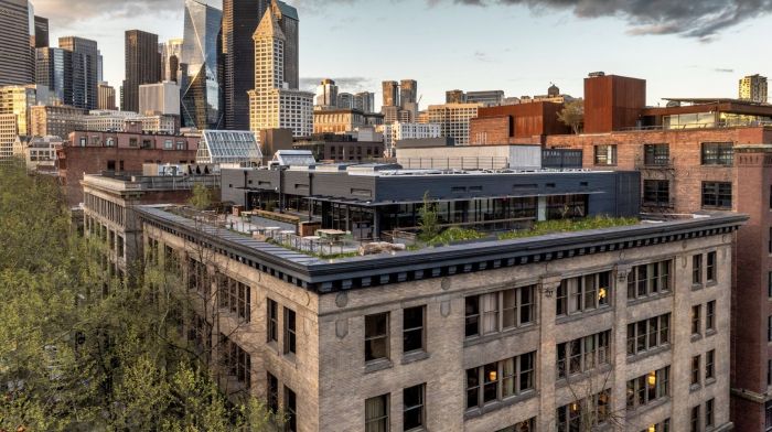 If Denver’s Populus looks toward the future, Seattle’s gazes both backward and forward. Opened in Pioneer Square, the city’s first neighborhood, Populus Seattle occupies the restored Westland Building, a 1907 landmark that has seen timber booms, Great Fires, and waves of reinvention.