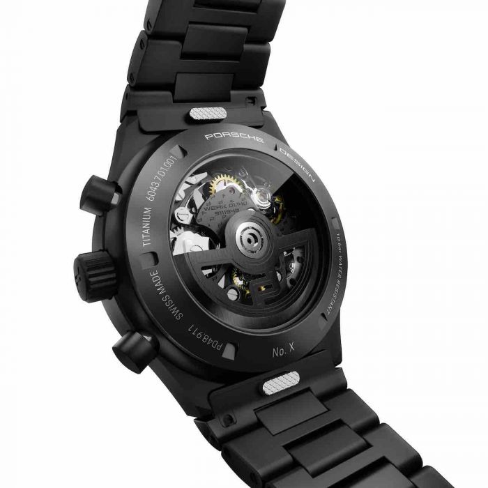 Porsche Design will make the watch’s 40.8mm case and bracelet with the same high-performance titanium it uses in nearly all Porsche Design timepieces today. And new SuperLuminova will enhance the watch’s visibility in the dark. All Porsche Design Timepieces are produced in-house at Porsche Design Timepieces AG, the brand’s own timepiece-manufacturing facility in Solothurn, Switzerland.