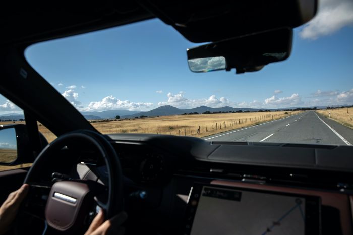 After a fantastic farm lunch, Tom Harrison, the lovely Global Senior PR Officer from Range Rover’s Special Vehicle Operations unit, showed us around a stunning Range Rover SV long wheelbase (LWB) parked in the courtyard. The famed Champagne fridge – complete with a chilled bottle of Veuve Clicquot and Waterford flutes – made an appearance, the Signature Suite Executive Class rear seats were reclined and airline-style table deployed. The gloss finish exterior in Icy White looked oh-so tasteful against the Corinthian Bronze contrast roof and Caraway leather interior but with a starting price of around $220,000 for these kind of sophisticated rear seat perks it’s a Range perhaps best suited to those with a driver.
