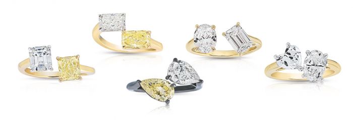 - Since COVID people feel a sense of new importance of family and spending time together. Now that they have shed their sweatpants and slippers, people are starting to dress up again, and we are seeing them go back to basics with Riviera necklaces, straight line bracelets, and diamond studs in particular have had a huge comeback. To be more design specific, ovals, rectangular emeralds and radiant cuts are something you can’t keep in stock. Another strong fashion that is quickly picking up is the yellow diamonds, yellow necklaces, yellow rings, yellow eternity bands, etc. Everything in yellow is quickly becoming the next big trend. Besides the design aspect of working with yellow diamond jewelry, I really believe there is great value in yellow jewelry, which was stagnant for a while and just started roaring back. Those consumers with a keen eye for upcoming trends are taking advantage and capitalizing on the current low price of yellow colored jewelry. Another comeback that we’re seeing on social media with celebrities, influencers and the younger generation in general is “Toi et Moi” jewelry, meaning “you and me,” is one of the most historic ring setting styles that symbolizes love stories and partnerships. It’s a fun piece to stack, wear as a cocktail ring, and women are self-purchasing these rings because they like the style and it’s a way fun way to express their own unique style.