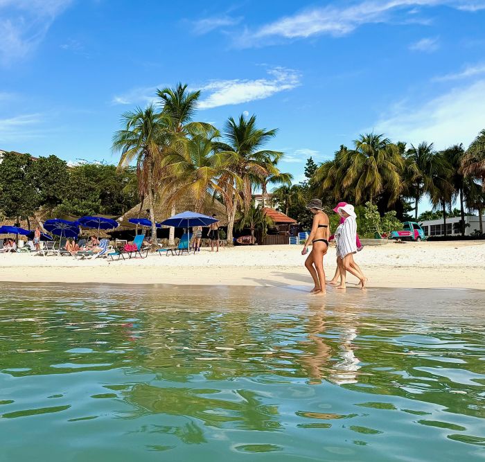 It’s perfect for families because the clear and shallow water is ideal for wading, swimming and floating on rafts. It’s popular for couples and honeymooners who enjoy long romantic beach walks, and it’s a safe area to explore during the day and evening.